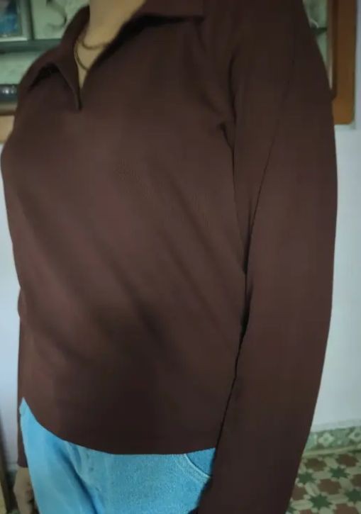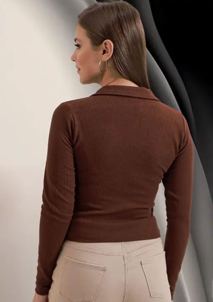 Name: Casual Polyester Blend Ribbed Collar V-Neck & Regular Long Sleeves Stylish Coffee Top (20"Inches)