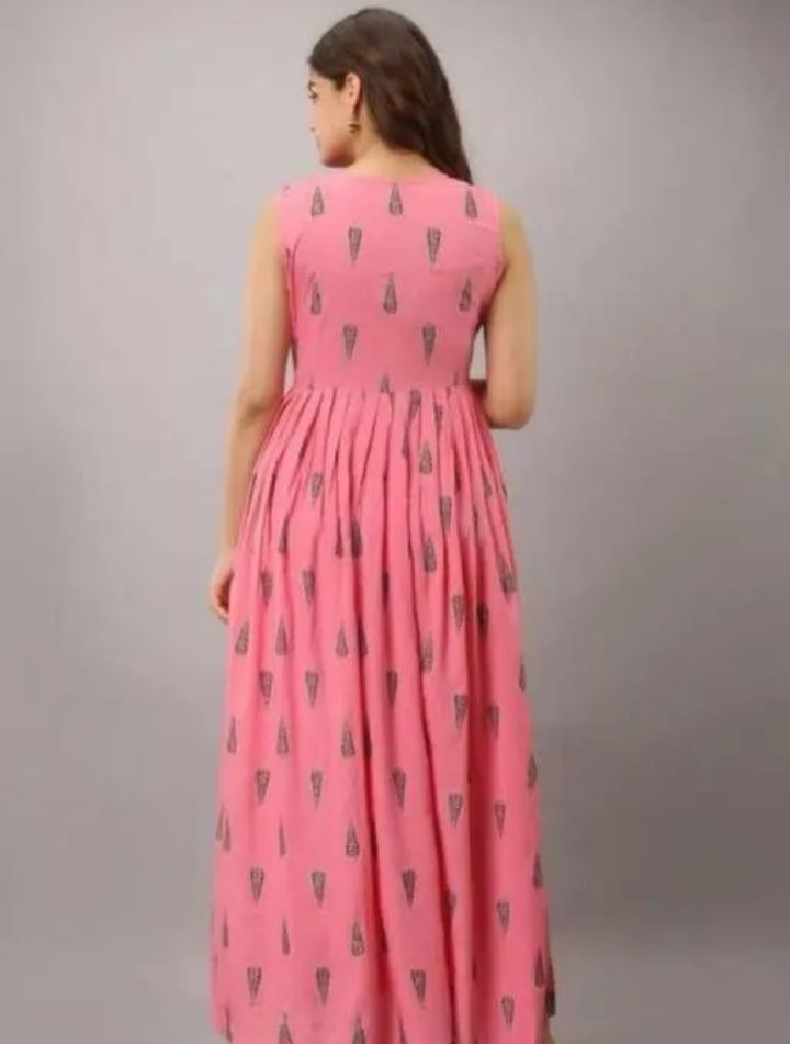 Name: Rayon printed Anarkali Sleevless Long Kurti cum Gown