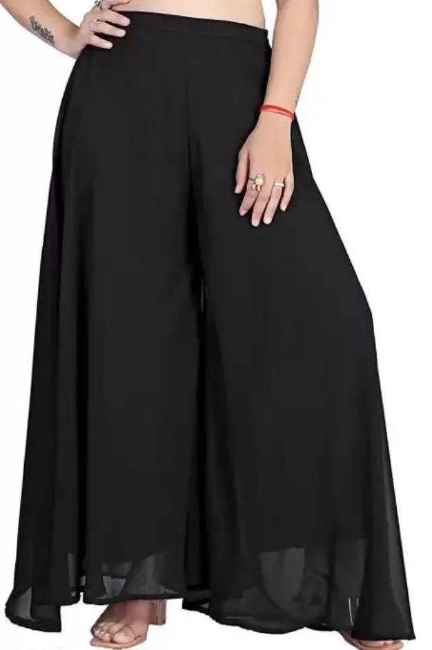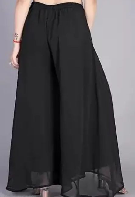 Name: Women Georgette Flared Ethnic Relaxed Fit Elastic Closure Palazzo (Black) || Summer Wear Palazzo Pants || Stylish Modern Women Bottom Wear || Black Sharara